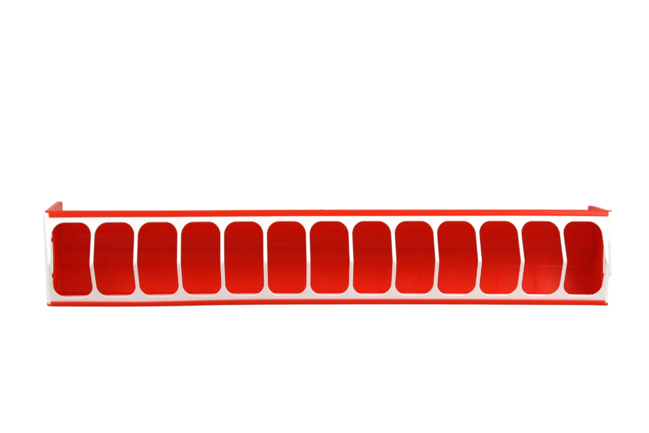 Con una longitud de 0,75 m, este modelo ofrece una capacidad mayor, perfecta para grupos numerosos de aves. Su separador central permite una distribución uniforme del alimento, evitando desperdicios y favoreciendo un acceso equitativo.