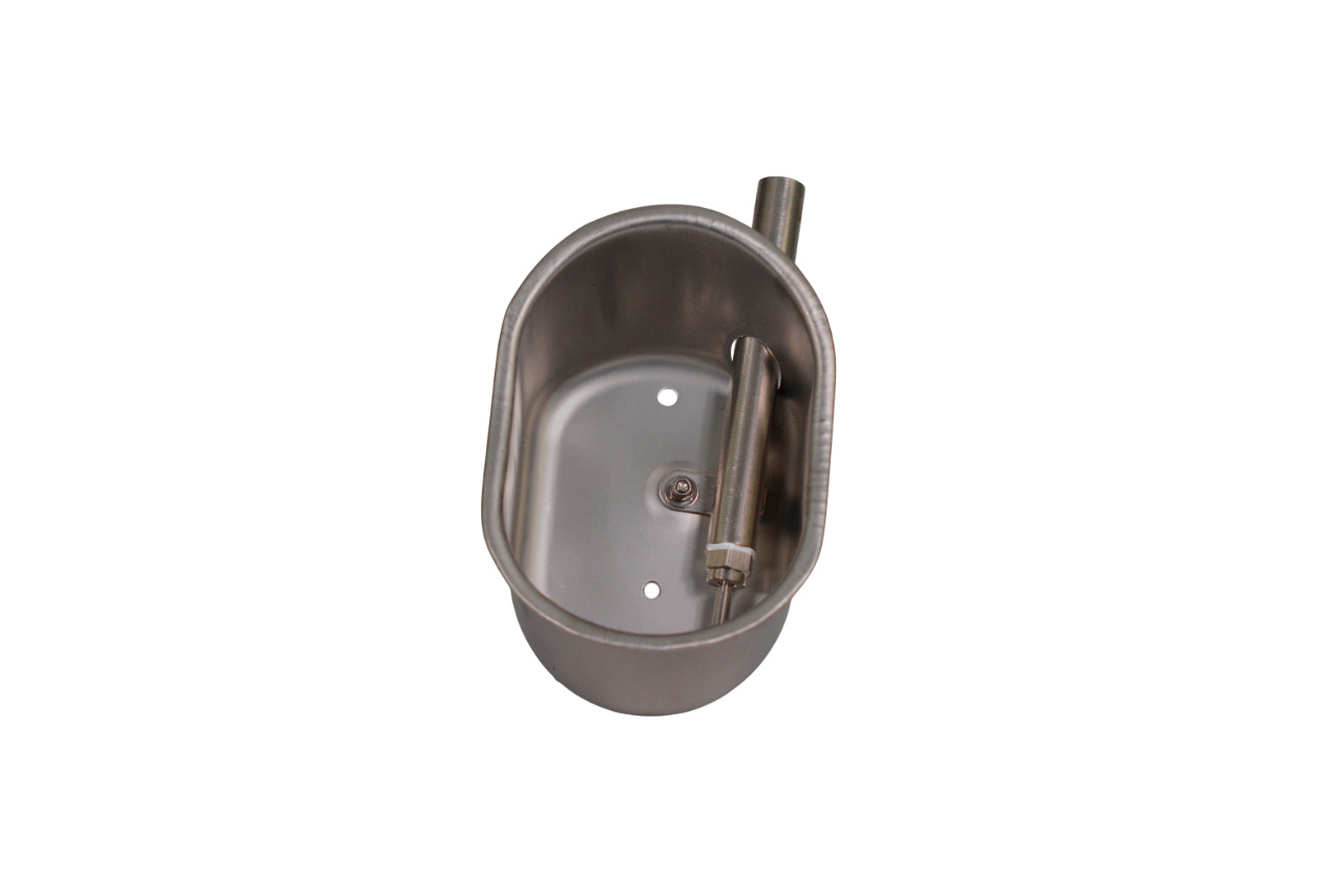 Bebedero inox para lechones, resistente y seguro, con bordes redondeados para evitar lesiones.