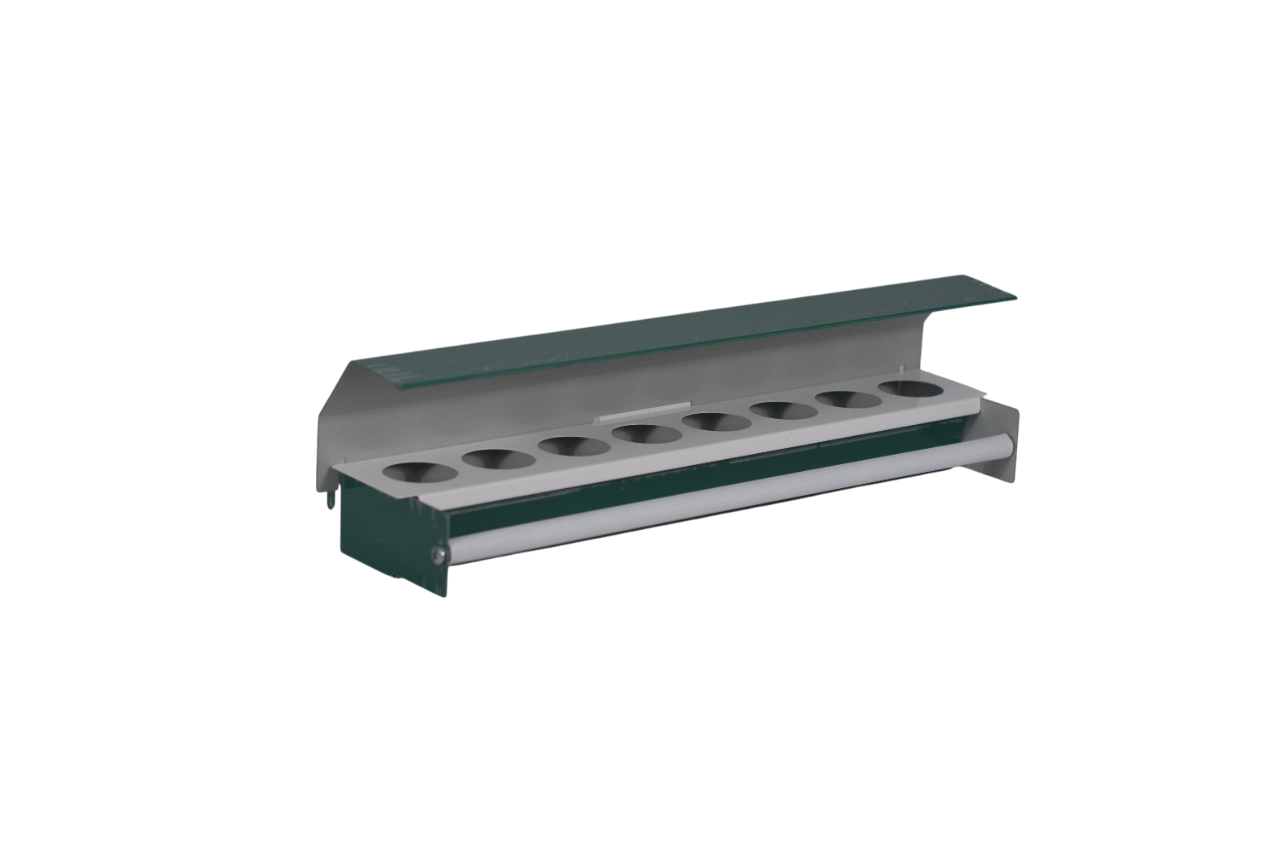 • Ocho huecos para alimentación individual de las aves.