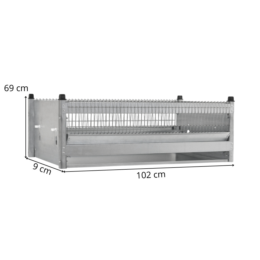Criadora para aves fabricada en acero galvanizado, diseñada para el cuidado y alojamiento de animales jóvenes en granjas y explotaciones avícolas. Su estructura compacta ofrece un espacio seguro y controlado, ideal para los primeros días de vida.