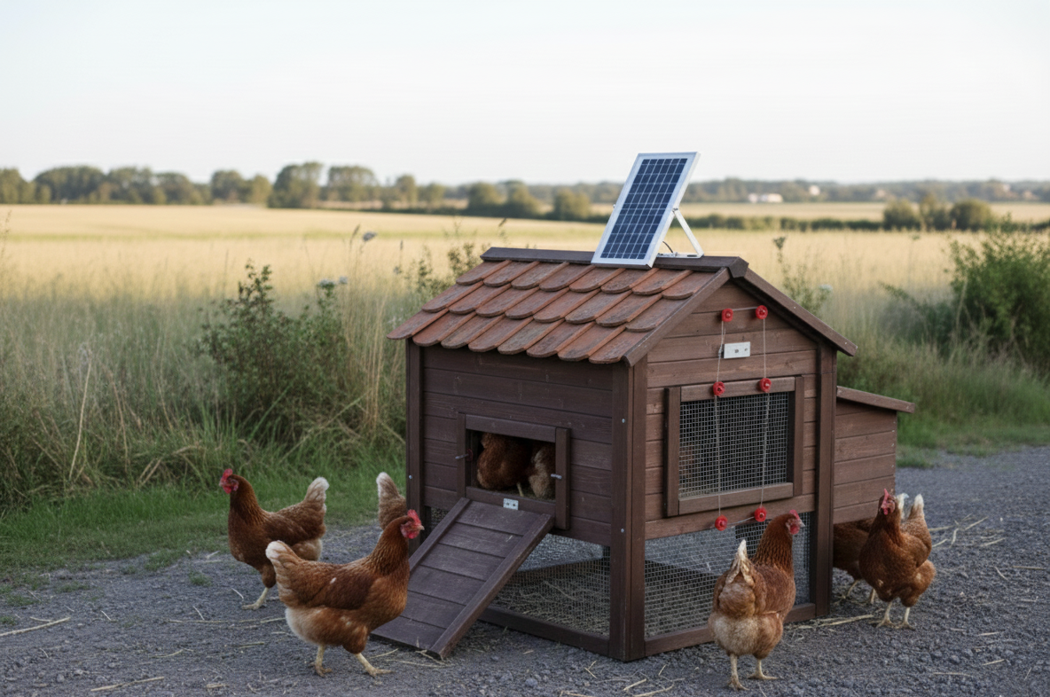 Ideal para gallineros domésticos y granjas avícolas que buscan una solución sostenible y autónoma para el funcionamiento de puertas automáticas, mejorando la seguridad y reduciendo el consumo eléctrico.