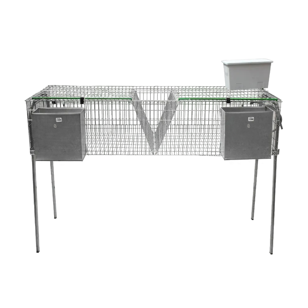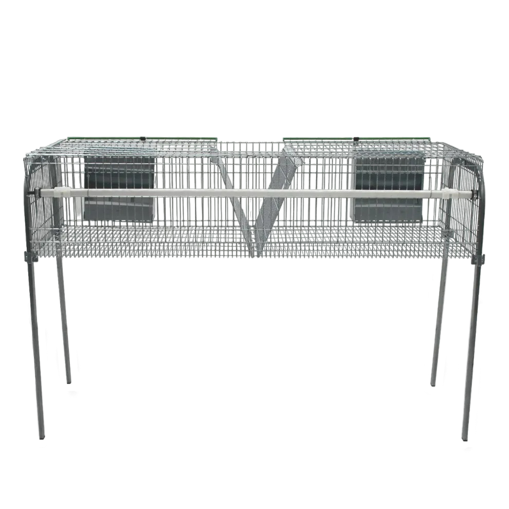 Modelo Económica-8 ideal para engorde de conejos, diseñada para ofrecer un alojamiento práctico y completo en granjas y criaderos. Su distribución en dos departamentos permite organizar mejor los animales, facilitando el manejo diario y el control durante la fase de engorde. Incluye forrajera en cada departamento, dos comederos de chapa galvanizada de 3 bocas para una alimentación ordenada y dos bebederos de chupete que aseguran agua constante sin derrames. Con este equipamiento, el módulo ofrece una solución funcional que mejora la higiene y el aprovechamiento del alimento y el agua. Características principales: