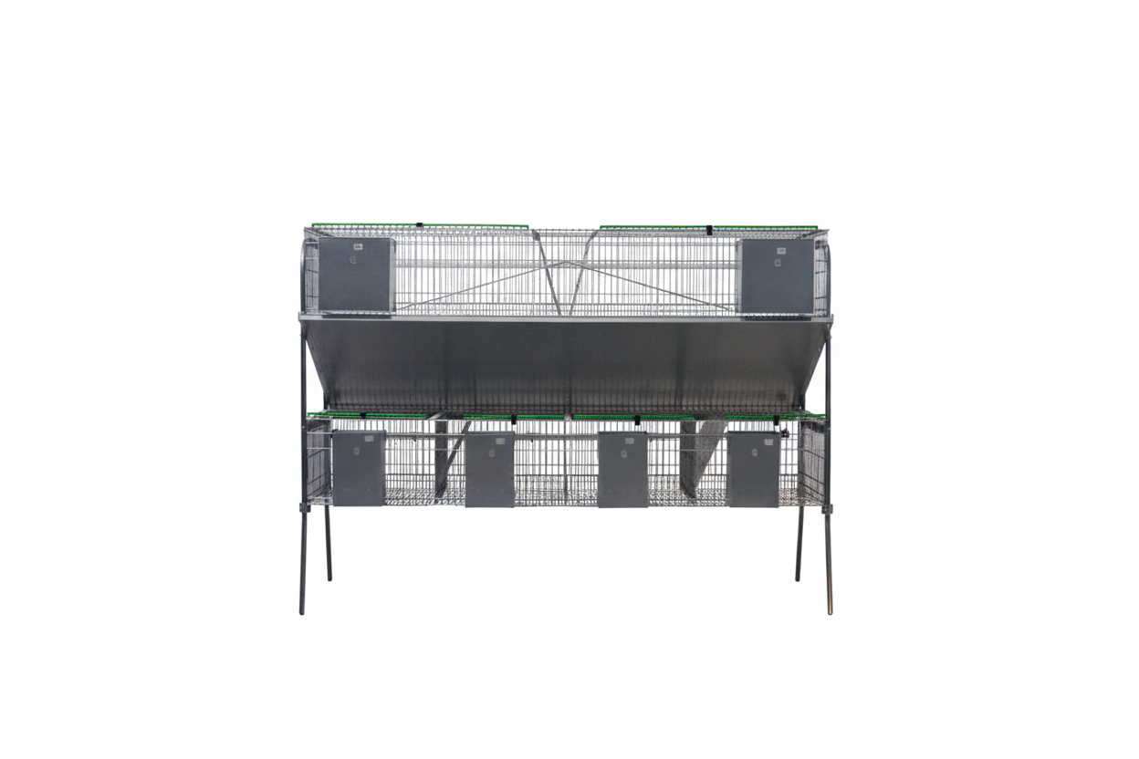 Modelo Económica-9 para cría y engorde de conejos, diseñada para un manejo práctico y organizado en granjas y criaderos. Su formato permite alojar animales en distintos niveles, facilitando el control diario y ofreciendo un sistema funcional para uso continuado.