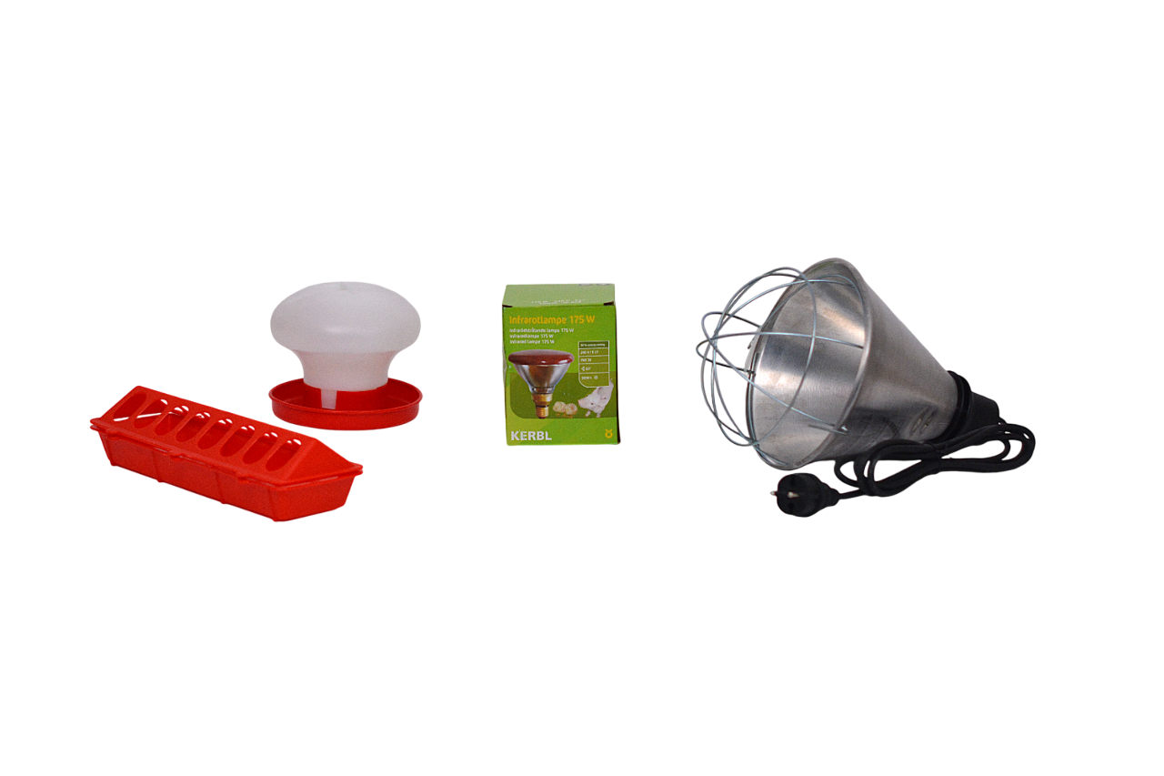 Pack de accesorios para criadora redonda, pensado para equipar la zona de cría con los elementos básicos necesarios desde el primer día. Incluye componentes esenciales para mantener a las aves con calor, agua y alimento de forma sencilla y práctica.