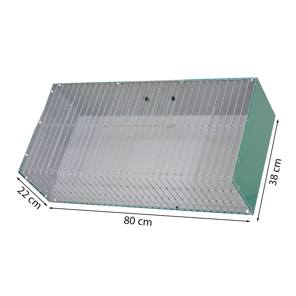 Reclamo para capturas de animales fabricado con chapa y parrilla galvanizada resistente, diseñado para su uso como elemento auxiliar en sistemas de captura en instalaciones cinegéticas o control de fauna. Su diseño enrejado permite una correcta ventilación y visibilidad, facilitando la atracción del animal y garantizando un uso seguro y eficaz.