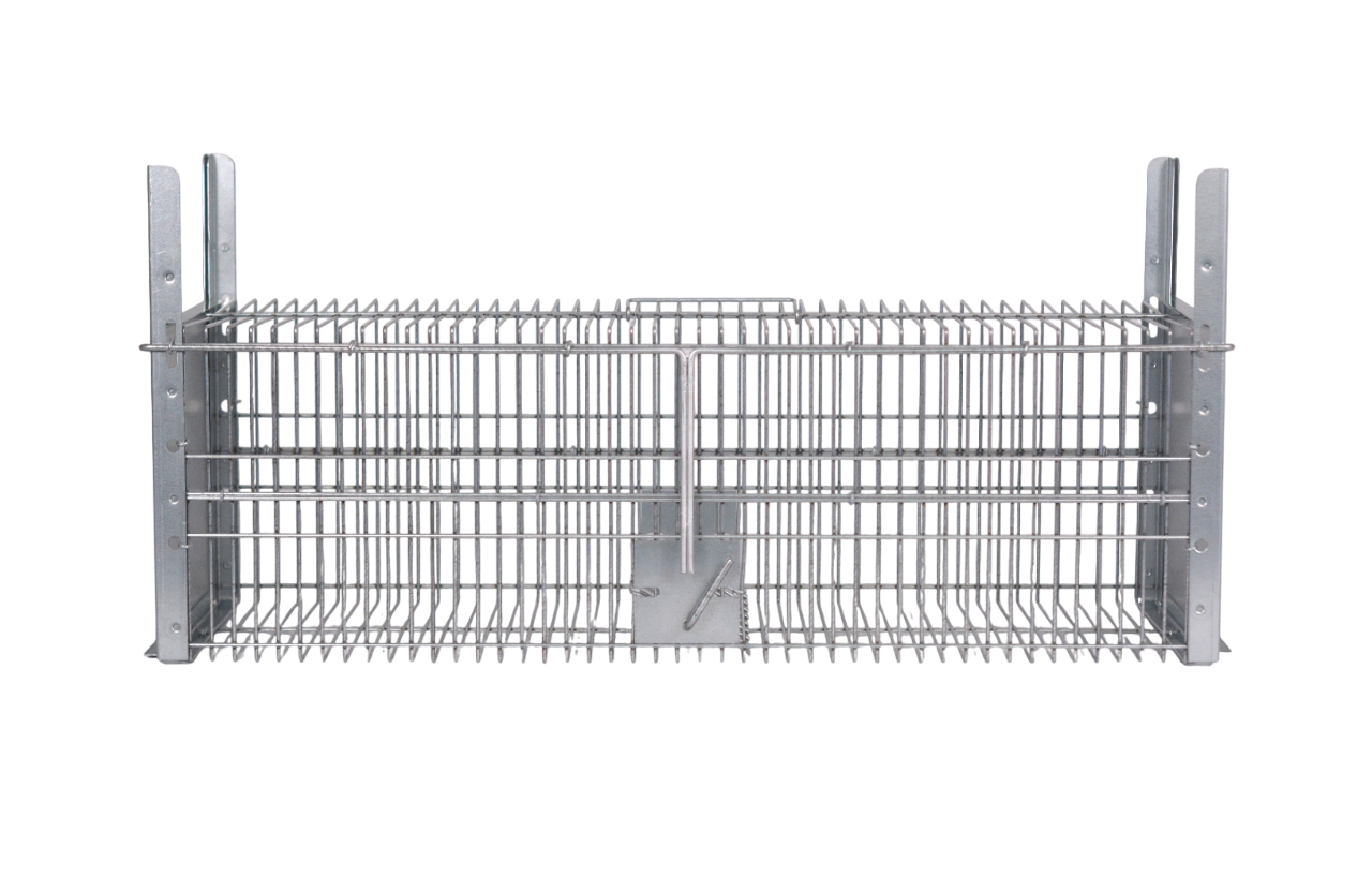 Trampa metálica resistente para captura segura de animales pequeños. Permite buena ventilación y visibilidad. Fácil de instalar y reutilizable.