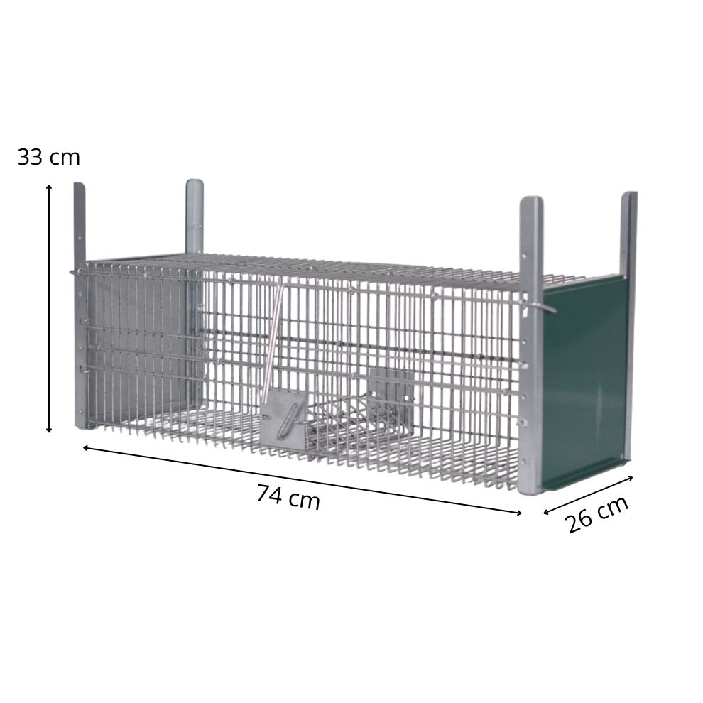 Su sistema de cierre automático asegura que el animal quede retenido sin causar daño, y su diseño permite una instalación rápida y sencilla.