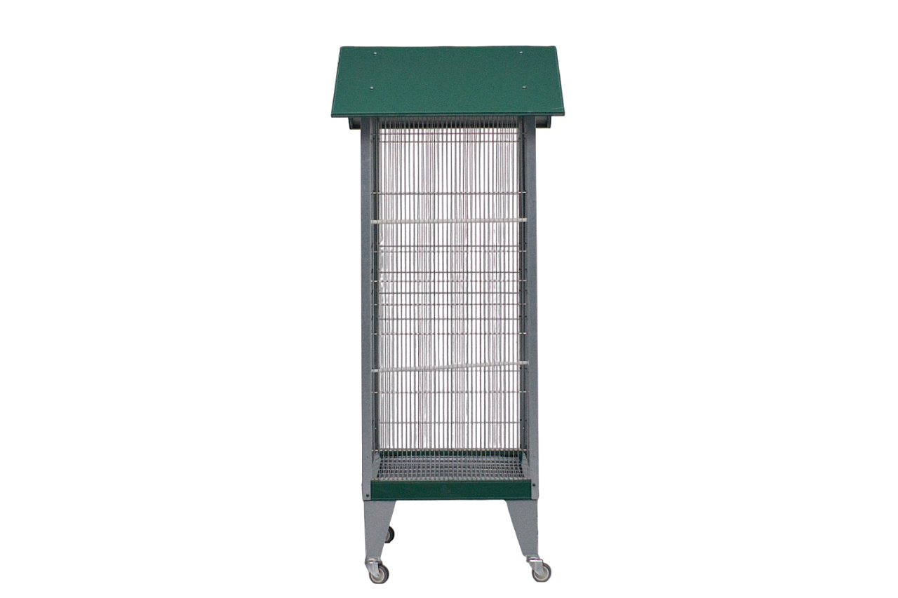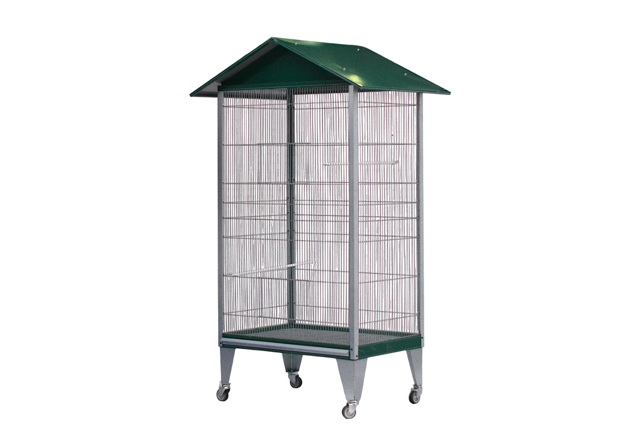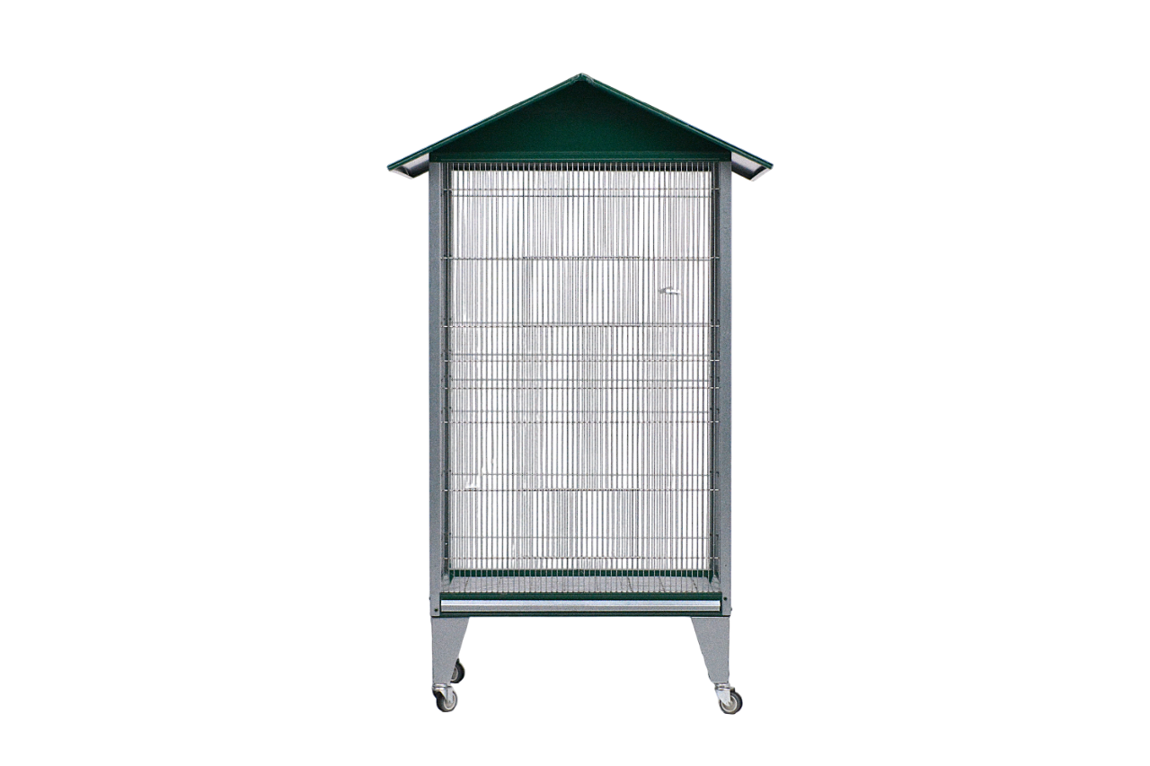 Voladero de chapa galvanizada con puerta de acceso y bandeja extraíble. Resistente, seguro y diseñado para la cría y resguardo de aves.